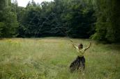 Für „our future“ hat das Team new trouble unter der Leitung von Antje Velsinger mit vielen Jugendlichen im Alter von 15 bis 19 Jahren gesprochen und ihre Stimmen aufgenommen. Ihre Beobachtungen, Ideen, Wünsche und Befürchtungen werden im Original zu einem Teil der Soundskulptur (Julia Krause), zu denen Schönlaus Körper den Ausdruck findet. Zusätzlich leiht sie den Jugendlichen auch immer wieder ihre eigene Stimme, indem sie deren Texte in ihre Bewegungen miteinfließen lässt. Obwohl sie ganz alleine auf der Bühne ist, wird sie so zum Sprachrohr vieler. So lebt diese Arbeit von der eindrucksvollen Präsenz dieser Performerin, die mit ihrem sehr authentisch wirkenden Spiel und der emotional sprechenden Choreographie in die Stimmungslagen der Jugendlichen eintauchen lässt. (Pressefotos: Julie Nagel)