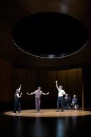 Wer hier genau wen zu manipulieren oder zu missbrauchen versucht, ist letztendlich gar nicht so wichtig. Jede/r kann in die überlegene oder unterlegende Position kommen, alles nur eine Frage des Timings, des Alters, der Stellung oder der Zeit. Dadurch wird das Machtspiel einerseits zu etwas fast Beliebigen und andererseits umso gefährlicher. Keiner kann sich sicher sein, dass er oder sie nicht auch demnächst am Boden liegt. Alle spüren stets auch im momentanen, vermeintlichen Sieg schon die kommende Niederlage. Ein interessantes Experiment. Ob es gelingt, hängt allerdings auch stark von der Energie des jeweiligen Aufführungsabends ab. (Foto Krafft Angerer)