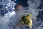 Was also jetzt tun, um die Klimabilanz des Abends noch zu retten? Kein Problem, Kunze und Otto haben noch andere Ideen in petto. Schließlich hatte der Schweizer Unternehmer den Weg schon vorgezeichnet. Der erste Vorschlag ist makaber. Vielleicht einfach Climat Suizid verüben? Das wäre wohl die effektivste Variante der dauerhaften Einsparung von CO2. Aber es geht auch weniger radikal. Eventuell in Deutschland einen Solarkocher anschaffen und damit mindestens 30 mal im Jahr statt mit Kohle grillen? Oder vielleicht auf die nächste Urlaubsreise mit dem Flieger verzichten? Oder auf den Fleischkonsum? Vertragsformulare hat das Team schon vorbereitet mitgebracht. Der Andrang auf der Bühne war nach der Aufführung groß. Das lag sicher nicht nur am Bierkasten, der auf der Bühne bereit gestellt wurde. Der war ein Vorschlag des Kenianers Ogada. Als Kunze ihn nach seinem Kompensationsvorschlag fragte, sagte der nur: Trinkt einfach zusammen ein Bier! (Foto: Lea Dietrich)