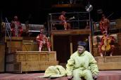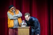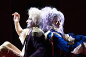So bekommt Anne Lenks Inszenierung von William Shakespeares „Was ihr wollt“ am Thalia Theater auf den letzten Metern doch noch einen Spaß dämpfenden Unterton. Der verletzte Junge-Union-Wähler Molvolio nervte schon vorher als spießiger Regelwächter und träumte derweil vom Klassenaufstieg, um endlich über den Anderen zu stehen. Das zahlen sie ihm durch einen üblen Spaß heim, durch den er so gedemütigt ist, dass er Rache schwört. Denen, bei denen es so drunter und drüber geht, will er es zeigen. (© Katrin Ribbe)