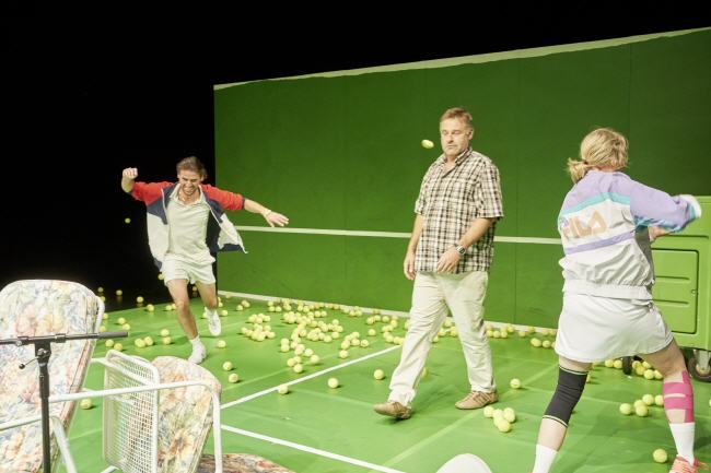 Melanie (Birte Kretschmer) stellt nur eine kleine unschuldig wirkende Frage, als der Vereinsvorsitzende Heribert (Konstantin Graudus) gerade die Bestellung eines neuen Grills als beschlossene Sache durchgewunken und schon zum Buffet gebeten hat. Wäre es nicht eine nette Geste, wenn wir für Erol (Fabian Monasterios) einen zweiten Grill anschaffen würden, damit er auch mitessen kann? Der Deutsch-Türke lehnt aus lauter Höflichkeit bescheiden ab: Nicht nötig. Er ahnt wohl auch, was sich nun in dem kleinen Dorf-Tennisverein abspulen wird. Schon bald stecken die fünf Vereinsmitglieder auf der Bühne in einem heftigen Schlagabtausch, in dem es um nichts geringeres als um die Kultur der Mehrheitsgesellschaft, um Toleranz, um Grillgeschichte und um die drohende Übernahme der Türken eines deutschen Clubs geht. Während Erol den Ball flach halten will, geht es bei den anderen um die Grillidentität. Dass auch die beiden Wohlmeinenden unter den Fünfen, Melanie und ihr sprachverliebter Ehemann (Robert Eder), irgendwann die Geduld am Austausch der Argumente, Meinungen und Haltungen verlieren und ihre andere Seite zeigen, die keineswegs frei von Vorurteilen und Klischees ist, macht den Charme dieses Stücks von Dietmar Jacobs und Moritz Netenjakob| aus. Da kann dann auch der schon in die Querdenkerecke gestellte Vizevorsitzende (Oskar Ketelhut) seine verständnisvollen Anteile wieder hervorkramen.