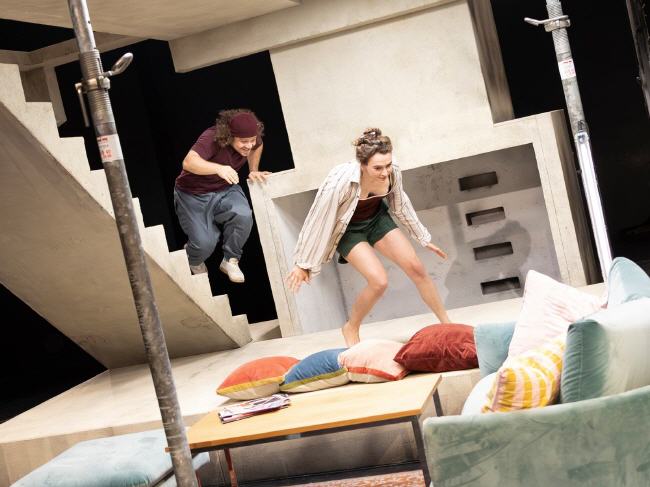 Das Haus, das Zuhause ist abgebrannt. Als verkohltes Mahnmal steht es auf der Bühne. Wie kam es dazu? Die Zeit wird von der einen Tochter, Alma, um sieben Jahre zurückgedreht.