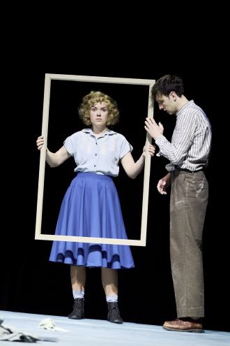 Regisseurin Kathrin Mayr entwickelt mit ihrem Ensemble eine hochkonzentrierte Fassung des 600-Seiten Romans von Siegfried Lenz, die in ihren Bann zieht. Sie teilt dafür die Bühne in zwei Ebenen. Unten an der Rampe ist Siggis Zelle, hinter ihm auf einem schrägen Podest spielen sich die Ereignisse in seiner Erinnerung ab. Dort treffen alle Figuren aus seinem Strafaufsatz in einer gemalten Landschaft zusammen. Der joviale Maler, dessen zugewandte Frau, seine strenge Mutter, seine liebenswerte Schwester, ihr Verlobter und über allem sein pflichtbessener Vater, der sich gerade im Kontrast zum widerständigen Maler im Laufe des Krieges immer mehr in seiner Haltung versteift, Recht zu haben und es auch vertreten zu müssen.