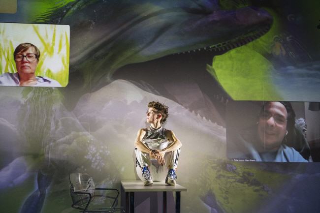 Doch jetzt zehn Jahre später kann Linke einen Abend zu Ehren ihrer Wahlfamilie in der neu geschaffenen Box im Thalia in der Gaußstraße geben. Trotz all der Hindernisse, die auch der Theaterbetrieb einer queeren Person in den Weg stellt, hat sie die Mitglieder ihrer Chosen Family heute hier versammelt. Manche von ihnen sitzen im Publikum. Alle mit auf die Bühne zu holen, wie sie es gewünscht hätte, dafür hätte das Budget leider nicht gereicht, aber als Videokacheln sind sie alle hinter Linke auf der Projektionsleinwand zu sehen. Auch mit Hilfe ihrer geteilten Erfahrungen entstand diese Performance, mit der sie versucht das Kunstsystem geschickt in Frage zu stellen. Dazu singt sie Popsongs, zieht sich die Boxhandschuhe an, setzt zarte Pflänzchen vorsichtig in frische Erde und lässt kleine Wale in großen Plexihalbschalen schwimmen. Linkes Texte sind ebenso intelligent wie unterhaltsam. Sie wirken nie belehrend, dafür entwaffnend ehrlich. So ist ein intimer Abend entstanden, der ganz von der vereinnahmenden Persönlichkeit Linkes getragen wird.