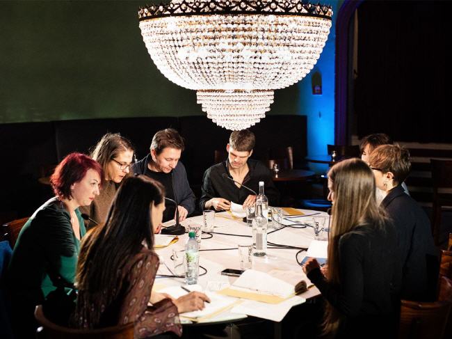 Verschwundene Städte stehen im Mittelpunkt der 16. Ausgabe des Salon Arsenalna in der Theaterkantine des Schauspielhauses. Vier Schauspieler:innen aus der Ukraine sitzen auf der Bühne und tragen Texte vor, die jeweils ein ganz persönliches Schlaglicht auf die Orte werfen, die für sie wahrscheinlich für immer verloren sind.