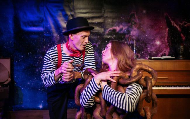 Mittendrin ein Begrifferaten wie bei den Montagsmalern: „Da hat meine Freundin letzten Sommer gejobbt, nur der erste Teil.“ „Dahin haben wir neulich eine Wanderung unternommen, jetzt beides zusammen.“ Natürlich: Eisberg ist die Lösung für alle Rätselfragen, die sich Anke Bautzmann und Tobias Schaller zuwerfen. Nur einer der witzigen Einfälle, um aus dem Liebesdrama „Titanic“ einen Abend zu machen, der eher Lachmuskeln als Taschentücher erfordert. Im Theater Das Zimmer ist es Regisseur Lars Ceglecki mit seinem schon in „Tagträumer“ erprobten Darstellerteam gelungen, einen informativen, unterhaltsamen und persönlichen Abend zu gestalten. Auf der kleinen Bühne brauchen die Beiden nur ein Klavier, ein paar Hüte, ein Kleid und ein paar Holzkästen, um in die zahlreichen Rollen des Filmklassikers zu schlüpfen. Und ganz nebenbei auch noch viele Informationen zu den Dreharbeiten, dem Filmcast, den Kosten und Einspielergebnissen des Films einzustreuen. Zu verdanken ist diese Zweipersonenfassung der Comedia Köln, die auch in der Hamburger Umsetzung für Begeisterung unter alten und neuen Fans des Titanic-Stoffes sorgt. Denn auch die letzteren gibt es, wie die Spontanumfrage zu Beginn ergibt. Doch jeder, auch die, die den Film noch nie ganz gesehen haben, werden am Schluss den Song „My Heart Will Go On“ mitsingen können. Ebenso einige Szenen wiedererkennen, die zu Ikonen der Filmgeschichte gehören.