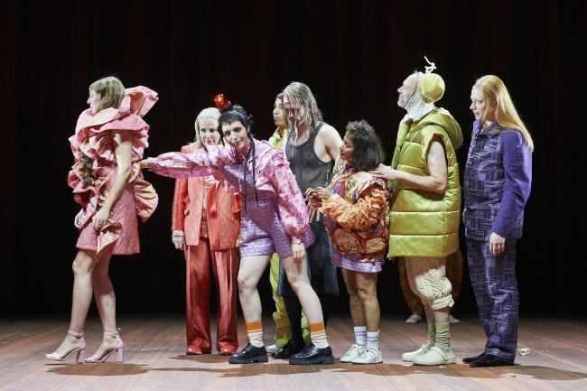 Doch Lenk sortiert die Paare völlig anders als bei Shakespeare. Als Olivia aus Versehen Sebastian küsst, dreht sie sich angewidert weg. „Ich dachte, ich hätte mich in dir gefunden“, wundert sie sich kopfschüttelnd. Klar, ihr Cesario ist schließlich Sebastians Zwillingsschwester Viola. Lenk löst diese angebliche Geschlechterverwirrung aber nicht auf. Bei ihr sind Olivia und Viola zum Schluss ein Paar. Hier findet sogar der unsterblich in Olivia verliebte Orsino einen Tröster: Ihm wird sein treu ergebener Narr an die Seite gestellt. Dass das (bei Lenk weibliche) Trinkerpärchen Iggy und Poppy sich finden, deutete sich schon im Verlauf des Abends an. Deren derbe sexuelle Anspielungen zogen sich durch die fast dreistündige Aufführung.