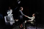 Am Schluss kommt ihre amerikanische Freundin Mary McCarthy zu Wort. Sie bescheinigt Hannah eine Bühnenqualität, die sonst nur wenige Intellektuelle gehabt hätten. Damit sei sie der Schauspielerei schon sehr nahegekommen. Sie sei nicht nur in verschiedene Rollen geschlüpft, sondern hätte auch den Show-Effekt, den gute Bühnenauftritte bräuchten, stets geliefert. Doch die allerletzten Worte gehören der so Beschriebenen selbst. Es sind die letzten Sätze aus dem Gaus-Interview, die filmisch festgehalten sind. Ein Agieren in der Welt sei nur im Vertrauen auf die Menschlichkeit möglich, die allen Menschen zu eigen wäre. Da spürt man unter den Zuschauenden in der Kammer des Deutschen Theaters ein raunendes Innehalten und anschließendes Verstehen, was diese Frau so besonders machte. Ihr unerschütterlicher Mut, ihr Festhalten am Hinterfragen und ihre Weigerung, ihren Glauben an die Radikalität des Guten zu verlieren. Denn das stellt dieser Abend auch klar: Das Böse sei nie radikal, sondern in dem Sinne banal, dass es oberflächlich und nie tiefsinnig sein könne.(Foto: Jasmin Schuller)