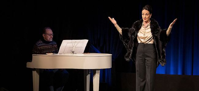 Fenske verkörpert diese Frau mit einer verblüffenden Perfektion. Mit jedem Zurückstreichen ihres Haares, mit jedem eleganten Schreiten über die Bühne, mit jedem strafenden Tonfall meint man die Callas vor sich zu sehen. Regisseur Corny Littmann wollte allerdings auch die komischen Aspekte dieser Übungsstunden nicht zu kurz kommen lassen. Die drei Schüler:innen (Freja Sandkamm in einer Doppelrolle und Ljuban Zivanovic) haben zwar wunderschöne Stimmen, müssen aber ihre jeweilige Unbeholfenheit und Unerfahrenheit so dezidiert ausspielen, dass der Musikgenuss fast in den Hintergrund tritt.